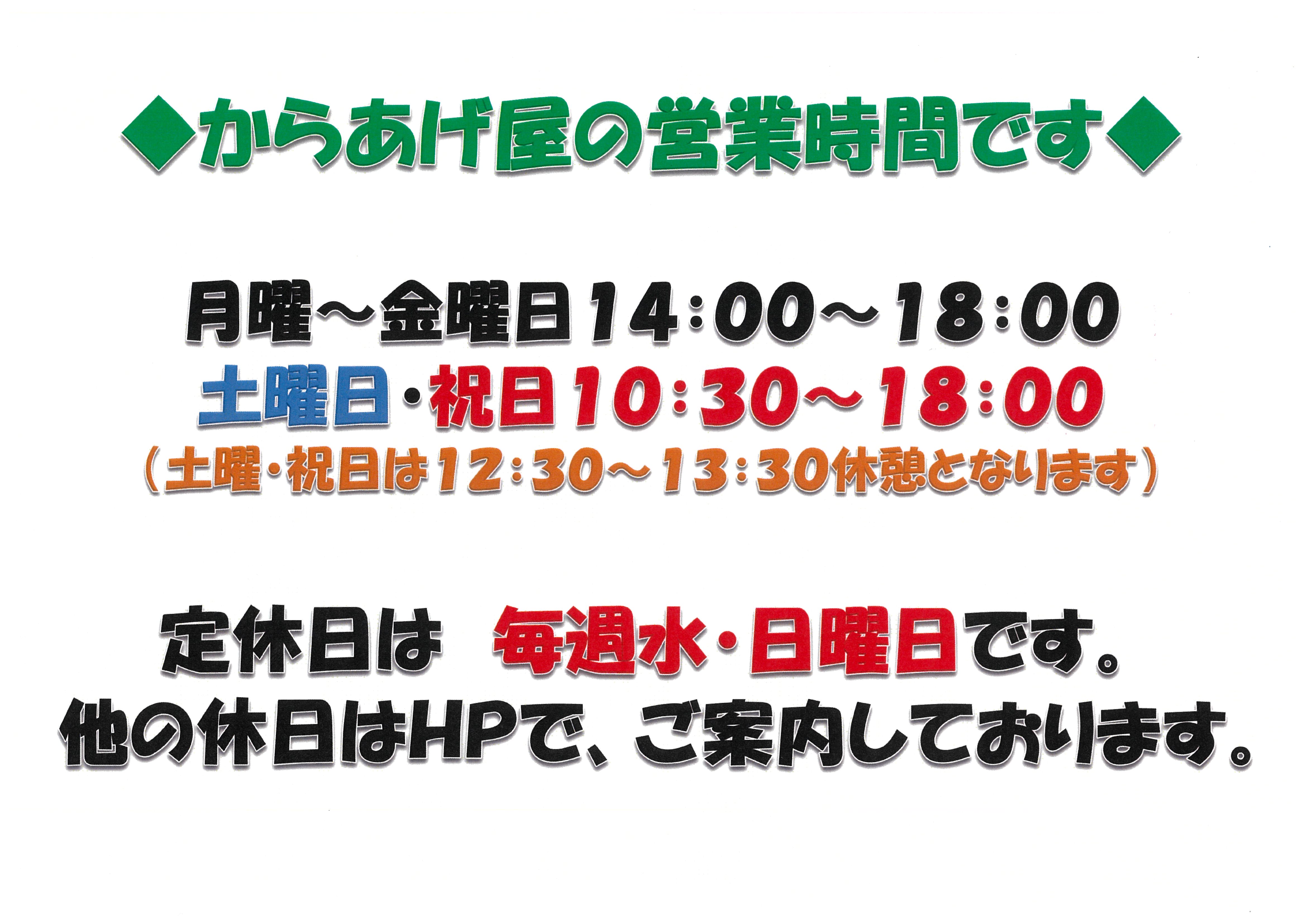 からあげ屋の営業時間は表記のとおりで